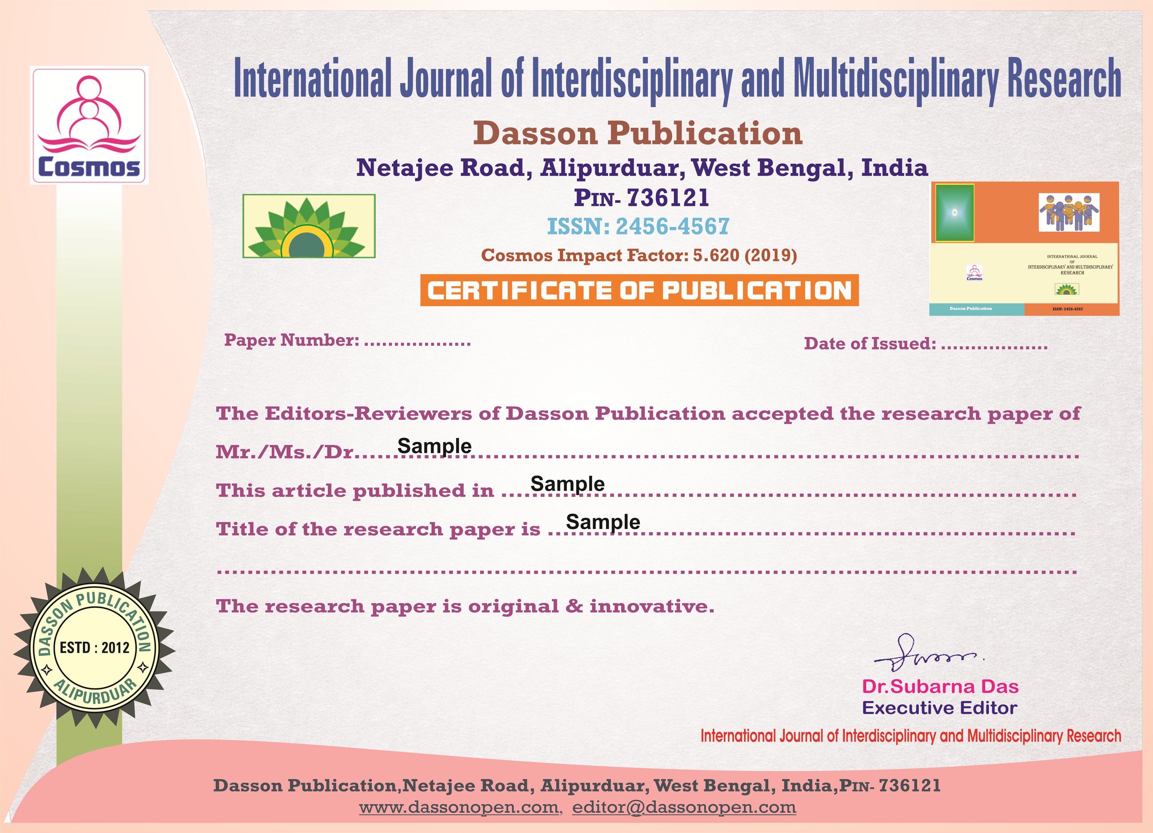 International Journal of Interdisciplinary and Multidisciplinary Research is Peer-reviewed and Referred, UGC approved ,Impact Factor 9.689 online journal published in English. The journals have worldwide recognition and fast publication. We provide an intellectual platform for researchers and scholars to set free their unexploited potential. The journal shall assist supervision from prominent and widely read intellects across the globe. Our journals help in providing a favorable, reliable as well as cost-effective solution of processing and delivering the publication to the doorstep of our readers. We believe in the veracity of people with an apparent organizational process. The journals provide for academics, scholars to publish current and significant research as well as publication activities.